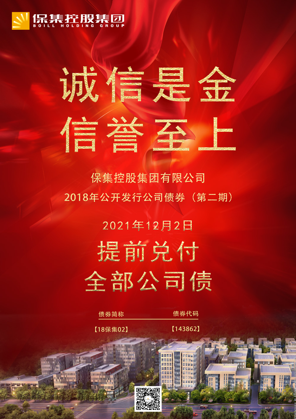 - 保集控股集团有限公司 2018 年����� �������Ƴ������������ �������Ƴ������������ �������Ƴ������������ �������Ƴ�������公开发行公司债券(债券代码:143����� �������Ƴ������������ �������Ƴ����������� �������Ƴ������������ �������Ƴ�������862 第二期 发行总额:人民币 2600����� �������Ƴ������������ �������Ƴ������������ �������Ƴ������������ �������Ƴ������0 万元)2021 年12月2日提前兑����� �������Ƴ������������ �������Ƴ����������� �������Ƴ������������ �������Ƴ������付诚信是天,承诺是地,天地合一唯诚信。..����� �������Ƴ������������ �������Ƴ������������ �������Ƴ������������ �������Ƴ�������.more